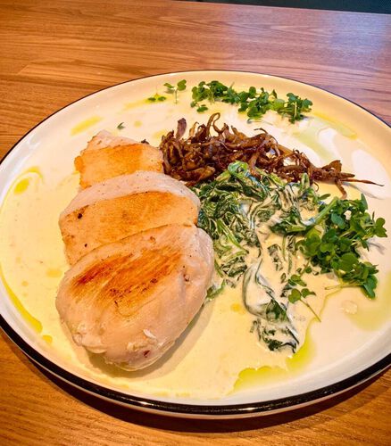 Куриное филе су-вид, шпинат, сливки, трюфельное масло, вешенки